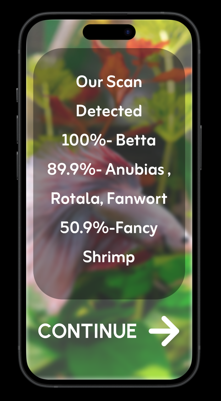 Individuals struggle most with recognizing fish species, plant varieties, and early symptoms of tank problems. To reduce the dependency on guesswork and unpredictable web sources, I explored AI-powered image recognition as a core feature. AI Scan enables users to scan a fish or plant instantly obtain species information, care , and compatibility recommendations.